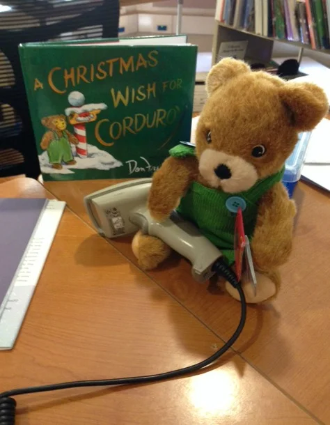 Finally, I received a copy of A Christmas Wish for Corduroy by B.G. Hennessy (Viking Juvenile, October 2014). Corduroy came to a school with me on Friday so I could tell the kids about him and his newest book.