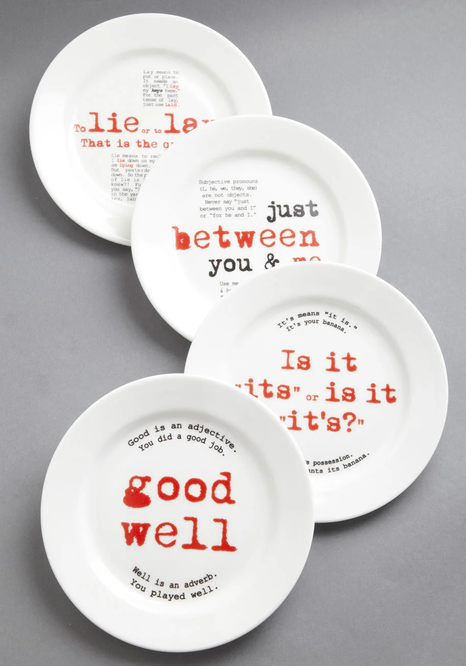 For the copy editor(s) in your life - Gourmet Grammarian Plate set from Modcloth.