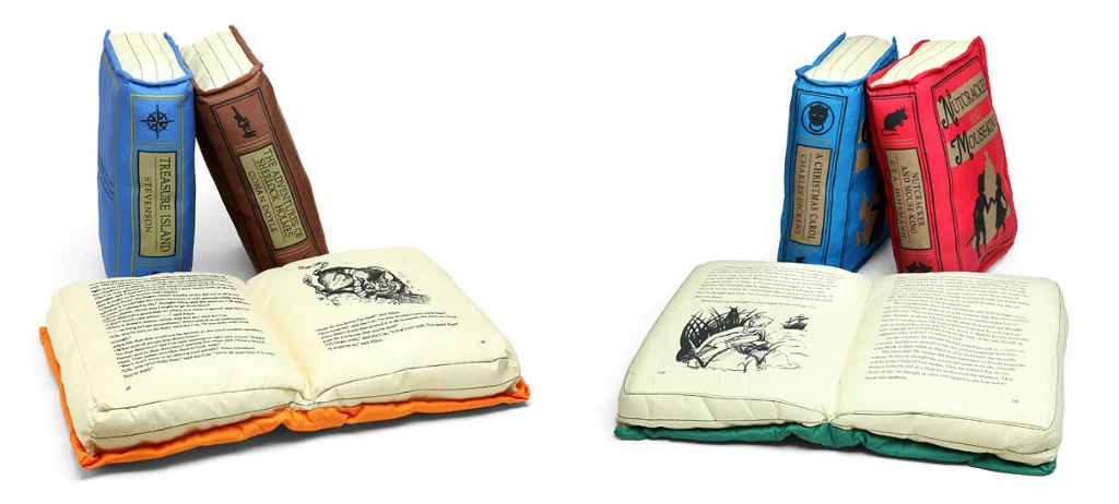 Super adorable book pillows, available from Think Geek. Holiday book pillows also available.