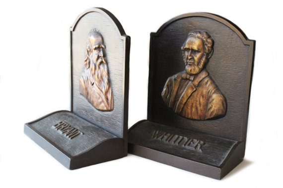 Bryant and Whittier Bookends - perfect for poetry lovers. Available from Etsy.