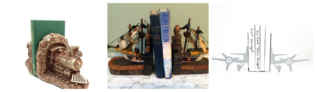 Any of these bookends would make great gifts for those who have large travel sections in their home library. Train Bookends, Clipper Ship Bookends, and Airplane Bookends are all available from Etsy.