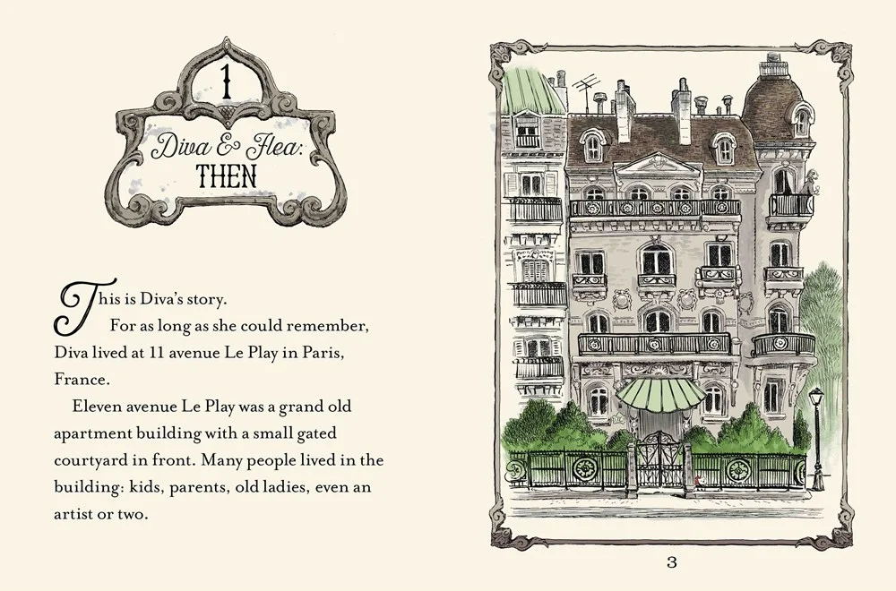 For as long as she could remember, Diva lived at 11 avenue Le Play in Paris, France. For as long as he could remember, Flea also lived in Paris, France–but at no fixed address. When Flea flâneurs past Diva's courtyard one day, their lives are forever changed. Together, Diva and Flea explore and share their very different worlds, as only true friends can do.