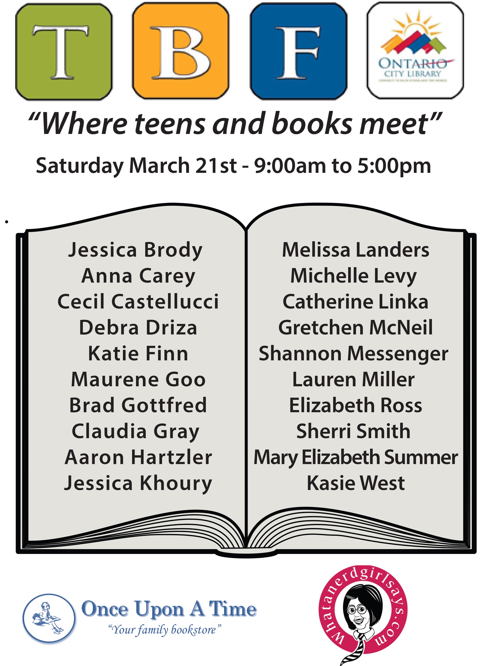 Looking forward to seeing everyone on Saturday, March 21, 2015 for the Ontario Teen Book Fest.