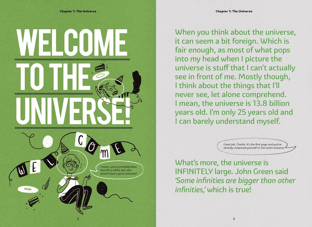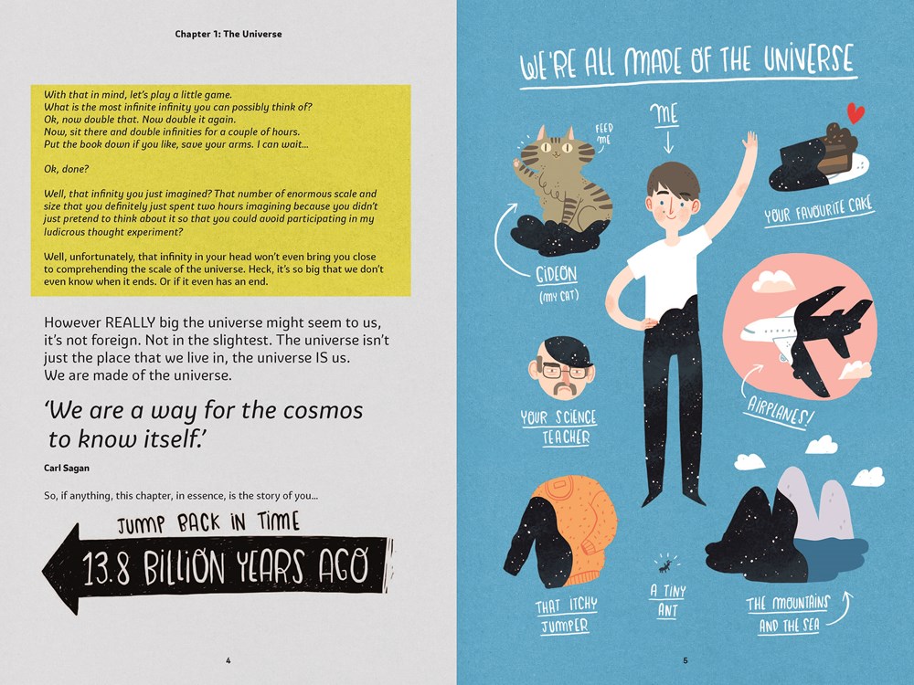 In my book, I'll be taking you on an awesome journey through the cosmos, beginning with the Big Bang through to the Solar System and the origins of life on Earth, all the way down to the particles that make up everything around us (including you and me!).