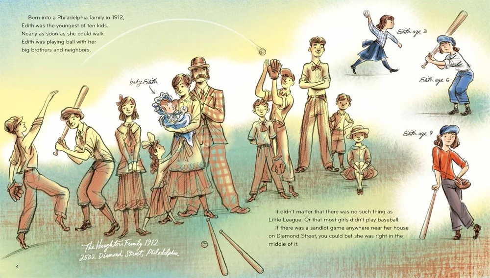 Each year, I try to do on baseball post. This year I have been waiting semi-patiently for Audrey Vernick's new book, The Kid from Diamond Street: The Extraordinary Story of Baseball Legend Edith Houghton. My idea was to combine a baseball post with a Women's History post. The challenge: Would I be able to find a copy of the book on release day in order to be able to read and post it for the last Wednesday of Women's History month? Thank you to Vroman's Bookstore for having a copy of the book in-store on release day.