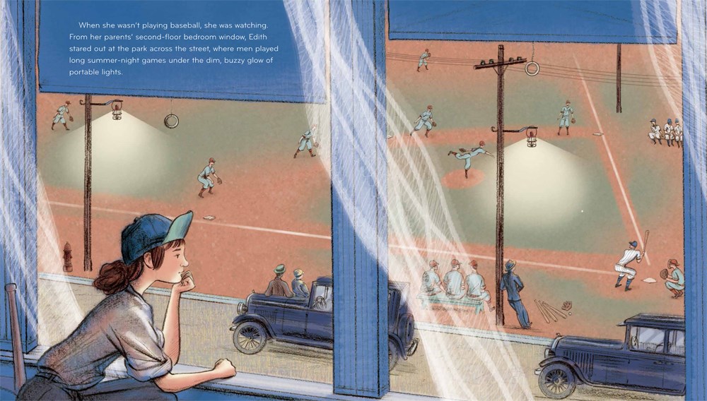 Audrey Vernick and Steven Salerno have again collaborated to bring us a captivating picture book about a compelling but little-known piece of baseball history. Beginning in 1922, when Edith Houghton was only ten years old, she tried out for a women’s professional baseball team, the Philadelphia Bobbies. Though she was the smallest on the field, soon reporters were talking about “The Kid” and her incredible skill, and crowds were packing the stands to see her play. Her story reminds us that baseball has never been about just men and boys. Baseball is also about talented girls willing to work hard to play any way they can.