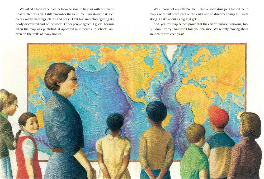 Burleigh made an interesting choice in telling the story with Marie as the narrator. At the end of the book, the author provides a one page summary of Marie Tharp's life with additional information not found in the narrative. Also, resources at the end of the book provide readers with links and books for further reading.