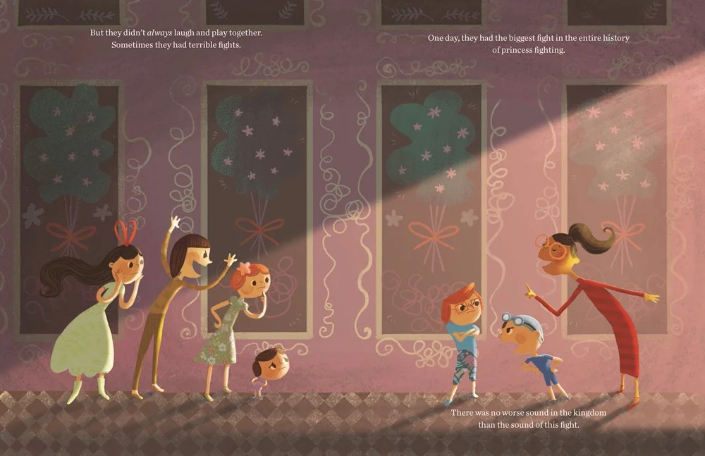 Once upon a time, there were seven princess sisters who did everything together, from horseback riding to jumping in royal leaf piles to throwing legendary piñata parties. But one day, they had the biggest fight in the entire history of princess fighting. There was no worse sound than the sound of this fight. Will the sisters ever find a way to fill their kingdom with sounds of laughter and playing again?