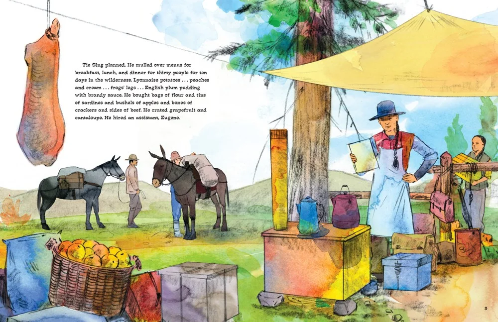 Tie Sing planned diligently. He understood the importance of this trip. But when disaster struck—twice!—and Tie Sing’s supplies were lost, it was his creative spirit and quick mind that saved the day. His sumptuous menus had to be struck and Tie Sing had to start over in order to feed the thirty people in the group for ten whole days. His skills were tested and Tie Sing rose to the challenge.