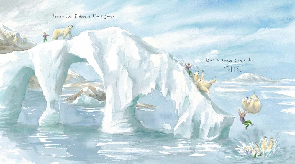 Sophie does not want to do her homework, a research report on polar bears. Bor-ing. They’re big. They eat things. They’re mean. What else is there to say about them anyway? As it turns out, plenty. And when a polar bear named Olafur swoops her away to the Arctic, she soon learns all about the playful bear’s habits and habitat—from glacier mice to the northern lights—and, despite her first reservations, she finds herself not just interested but excited about the Arctic. When the two are swept out to sea on an iceberg, Sophie’s new knowledge and knack for creative thinking pay off in a big way: she calls a whale to their aid! Inspired by her journey, she’s ready to return home and take another swing at her assignment, this time with gusto.