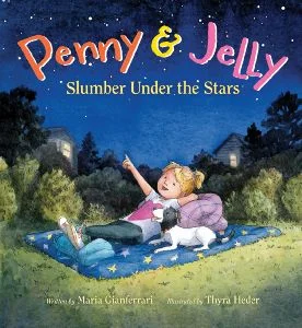Maria Gianferrari hasn’t slumbered under the stars recently, but she has two favorite stars: the dog star, Sirius, like Penny and Jelly, and Betelgeuse—just because it’s so fun to say! Maria stargazes from her backyard in Virginia with her husband, Niko, an amateur astrophotographer, her artist-daughter, Anya, and the dog star of her household, Becca. This is her second book for Houghton Mifflin Harcourt. For more information about Maria, please visit her website, mariagianferrari.com.